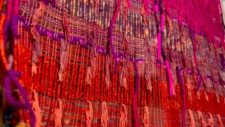 Through bold color choices and innovative techniques, Leigh Oviatt pushes the boundaries of contemporary fiber art from her Santa Fe studio. Her large-scale textile pieces emerge through intuitive exploration, combining rich textures with vibrant hues inspired by organic shapes and colors found in the natural environment. Each hand woven piece invites viewers into a tactile world where traditional craft meets modern expression. Her soft, handmade work is created in a state of flow and meditation, serving as a counterpoint to society's fascination with AI and fast paced living.