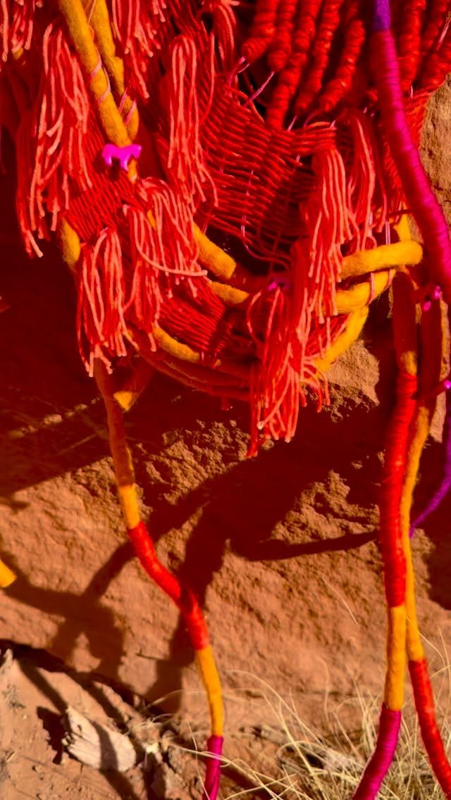 Through bold color choices and innovative techniques, Leigh Oviatt pushes the boundaries of contemporary fiber art from her Santa Fe studio. Her large-scale textile pieces emerge through intuitive exploration, combining rich textures with vibrant hues inspired by organic shapes and colors found in the natural environment. Each hand woven piece invites viewers into a tactile world where traditional craft meets modern expression. Her soft, handmade work is created in a state of flow and meditation, serving as a counterpoint to society's fascination with AI and fast paced living.